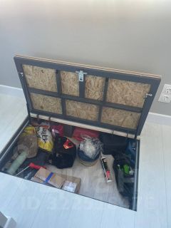 Утеплен, обшит и окрашен балкон, проведено электричество. На балконе из металлокаркаса установлен фальшпол с люком, под которым есть место для хранения на всю длину балкона.