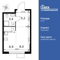 Продаётся 1-к квартира номер 960 общей площадью 23.5 кв.м. на 9-м этаже 25 этажного дома. Отделка Whitebox. Цена с учётом скидки!