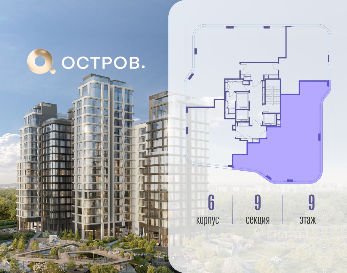 Продаётся 4-комн. квартира от застройщика: общая площадь 151.30 м², жилая 58.10 м², кухня 40.90 м², 9-й этаж, жилой квартал "Остров 12", корпус 6 (секция 9). Срок сдачи: 1 квартал 2029 года.