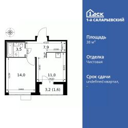 Продаётся 1-к квартира номер 173 общей площадью 38 кв.м. на 22-м этаже 24 этажного дома. Чистовая отделка. Цена с учётом скидки!