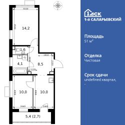 Продаётся 2-к квартира номер 181 общей площадью 51.1 кв.м. на 23-м этаже 24 этажного дома. Чистовая отделка. Цена с учётом скидки!