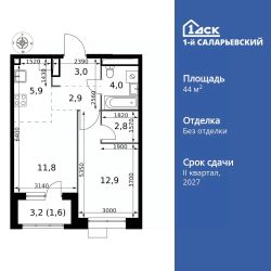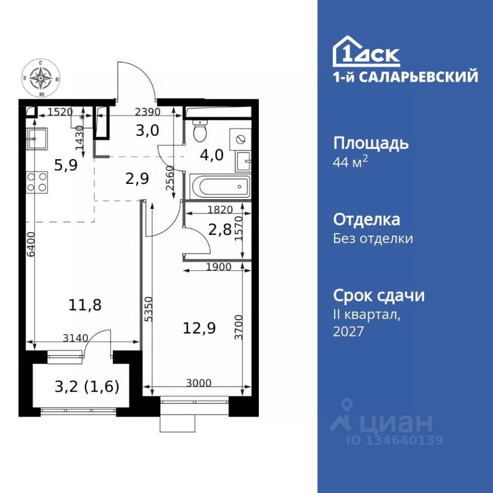Продаётся 2-к квартира номер 370 общей площадью 44.9 кв.м. на 20-м этаже 25 этажного здания. Без отделки. Цена с учётом скидки.