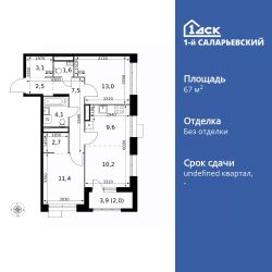 Продаётся 3-к квартира номер 261 общей площадью 67.7 кв.м. на 8-м этаже 25 этажного дома. Без отделки.