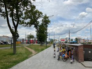 зелёный спальный район, просторный. Дом на возвышенности. Вокруг деревья, несмотря на то, что окна выходят на дорогу, машин мало и их не слышно. Все магазины рядышком, кафе, поликлиника, и т.д.