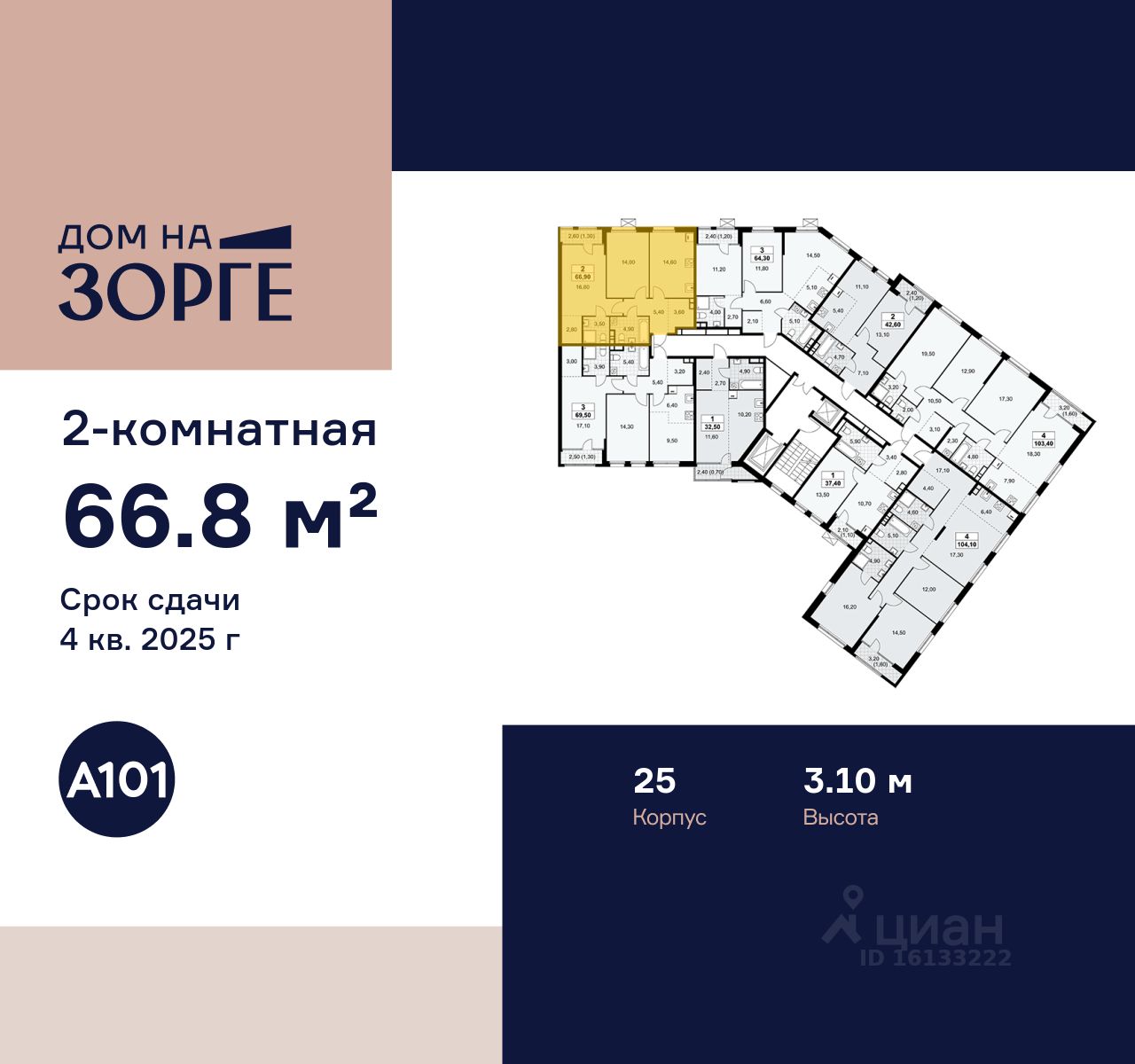 Продается двухкомнатная квартира 234 в новостройке ЖК "Дом на Зорге" по адресу Москва, САО, Сокол, улица Зорге, 25с2, Москва, 125252. Общая площадь квартиры - 66.80 кв. м., этаж 7 из 16, секция 2. Тип проекта, по которому построен дом - монолит, компания-застройщик - ООО "А101". Стоимость квартиры - 30537972 Р. Срок сдачи - 4 квартал 2025.