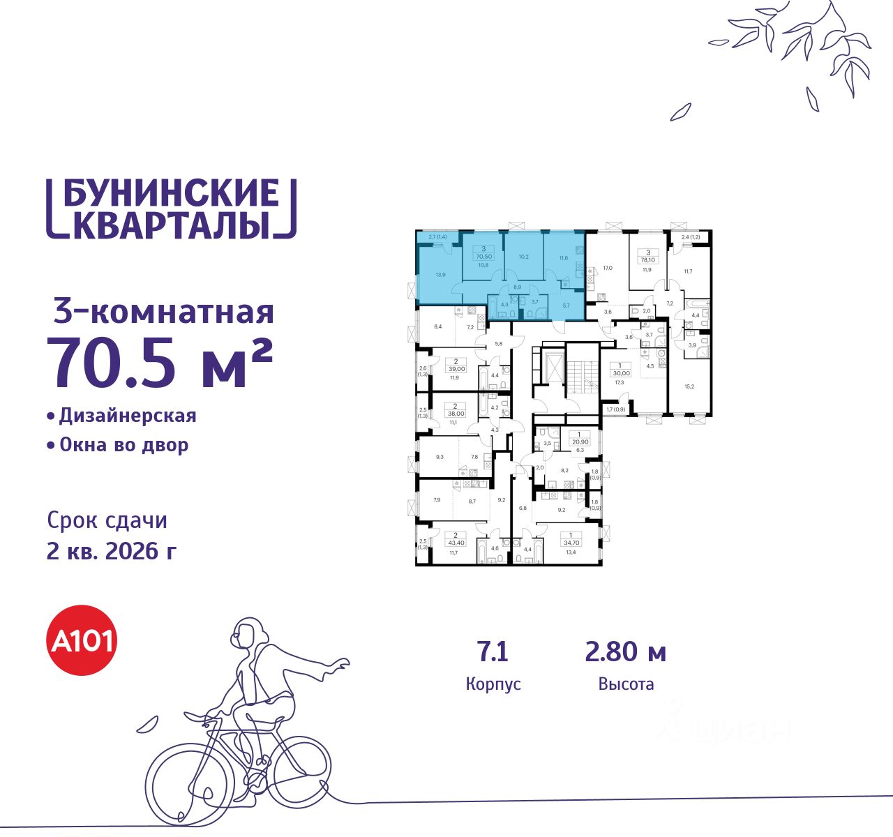 Продается трехкомнатная квартира 254 в новостройке ЖК "Бунинские кварталы" по адресу Москва, ТиНАО, Новомосковский АО, Сосенское С/П, жилой комплекс Бунинские Кварталы, 7.1, район Коммунарка, Новомосковский административный округ, Москва. Общая площадь квартиры - 70.50 кв. м., этаж 3 из 9, секция 4. Тип проекта, по которому построен дом - монолит, компания-застройщик - ООО "А101". Стоимость квартиры - 24005250 Р. Срок сдачи - 2 квартал 2026.