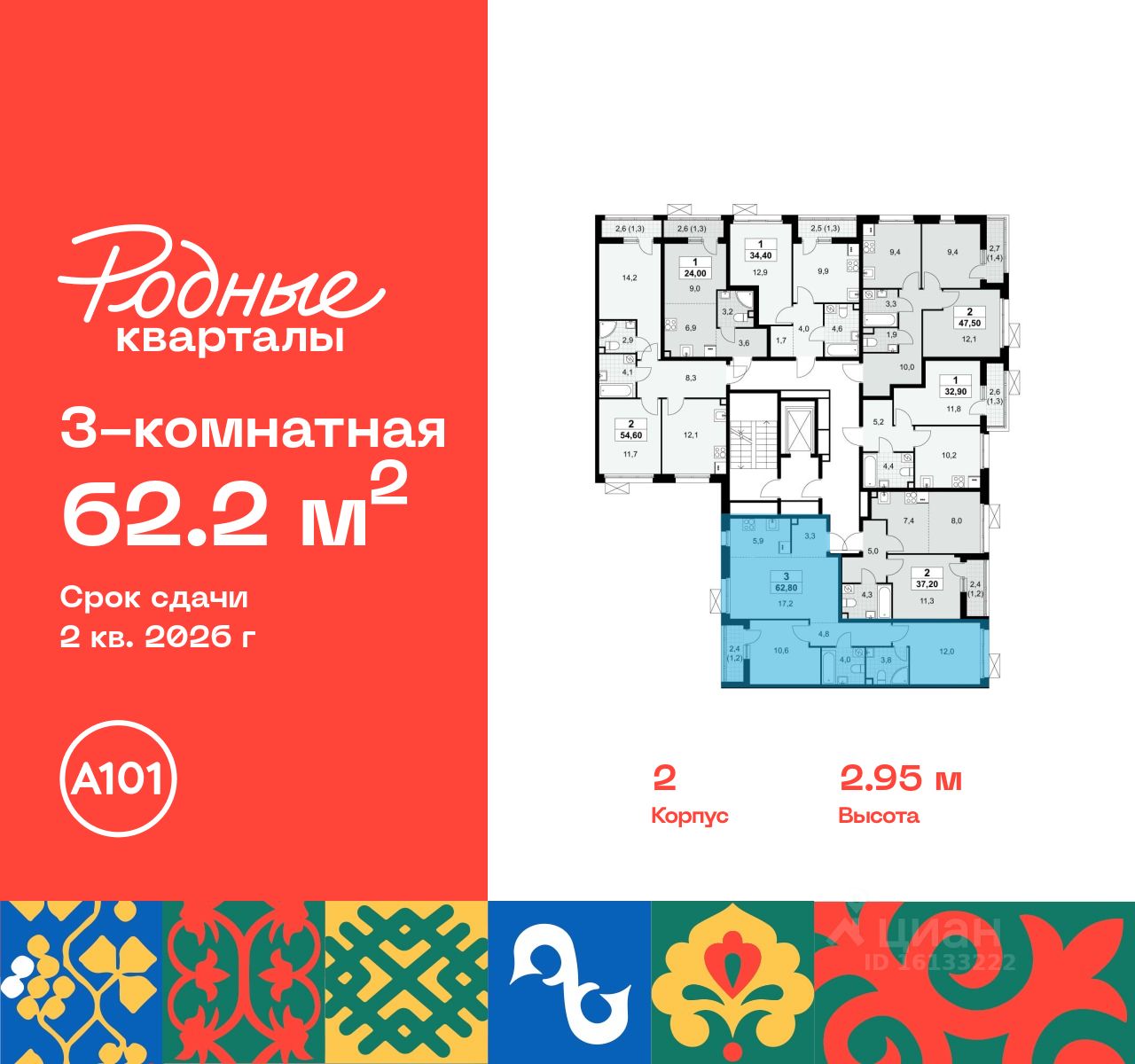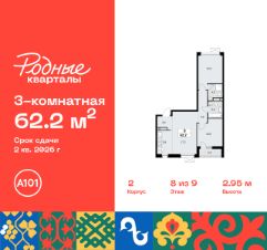 Продается трехкомнатная квартира 329 в новостройке Жилой район "Родные кварталы" по адресу Москва, ТиНАО, Новомосковский АО, Марушкинское С/П, жилой комплекс Родные Кварталы, 2, район Внуково, Новомосковский административный округ, Москва. Общая площадь квартиры - 62.20 кв. м., этаж 8 из 9, секция 7. Тип проекта, по которому построен дом - монолит, компания-застройщик - ООО "А101". Стоимость квартиры - 14551068 Р. Срок сдачи - 2 квартал 2026.