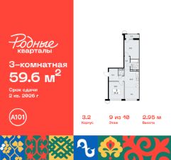 Продается трехкомнатная квартира 229 в новостройке Жилой район "Родные кварталы" по адресу Москва, ТиНАО, Новомосковский АО, Марушкинское С/П, жилой комплекс Родные Кварталы, 3.2, район Внуково, Новомосковский административный округ, Москва. Общая площадь квартиры - 59.60 кв. м., этаж 9 из 10, секция 5. Тип проекта, по которому построен дом - монолит, компания-застройщик - ООО "А101". Стоимость квартиры - 16028228 Р. Срок сдачи - 2 квартал 2026.