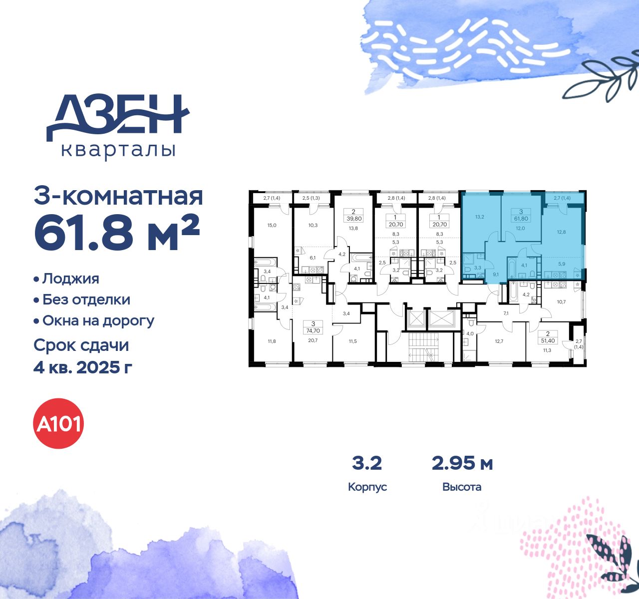 Продается трехкомнатная квартира 560 в новостройке ЖК "Дзен-кварталы" по адресу Москва, ТиНАО, Новомосковский АО, Сосенское С/П, жилой комплекс Дзен-кварталы, 3.2, район Коммунарка, Новомосковский административный округ, Москва. Общая площадь квартиры - 61.80 кв. м., этаж 13 из 14, секция 7. Тип проекта, по которому построен дом - монолит, компания-застройщик - ООО "А101". Стоимость квартиры - 24192228 Р. Срок сдачи - 4 квартал 2025.