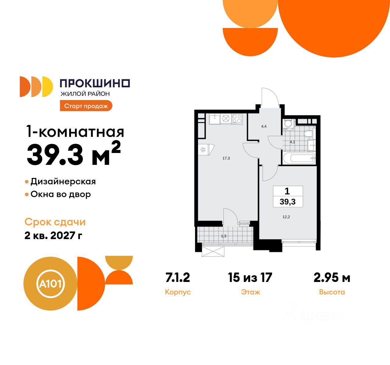 Продается однокомнатная квартира 341 в новостройке Жилой квартал "Прокшино" по адресу Москва, ТиНАО, Новомосковский АО, Сосенское С/П, жилой комплекс Прокшино, 7.1.2, район Коммунарка, Новомосковский административный округ, Москва. Общая площадь квартиры - 39.30 кв. м., этаж 15 из 17, секция 5. Тип проекта, по которому построен дом - монолит, компания-застройщик - ООО "А101". Стоимость квартиры - 19561182 Р. Срок сдачи - 2 квартал 2027.