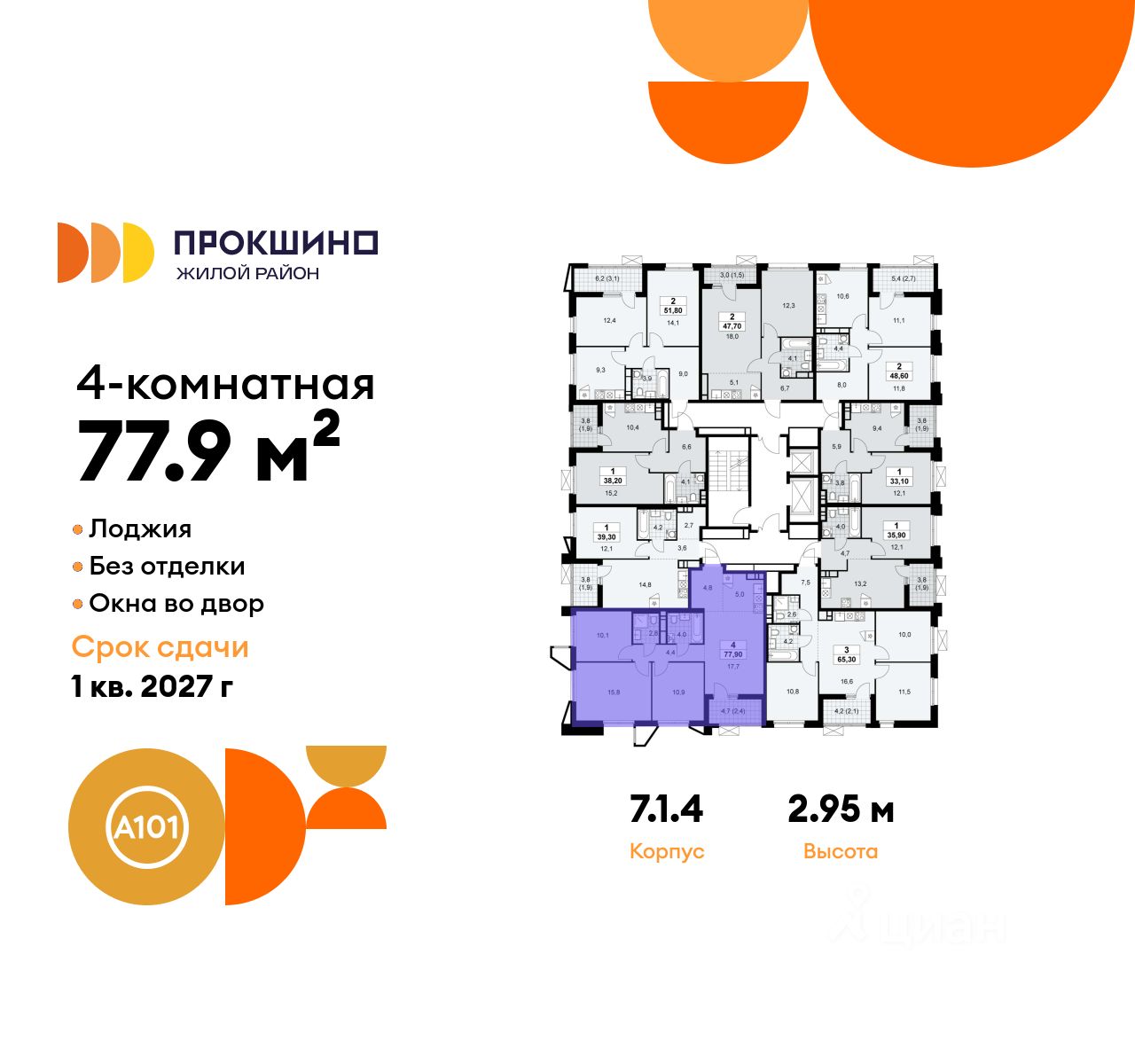 Продается четырехкомнатная квартира 649 в новостройке Жилой квартал "Прокшино" по адресу Москва, ТиНАО, Новомосковский АО, Сосенское С/П, жилой комплекс Прокшино, 7.1.4, район Коммунарка, Новомосковский административный округ, Москва. Общая площадь квартиры - 77.90 кв. м., этаж 13 из 17, секция 8. Тип проекта, по которому построен дом - монолит, компания-застройщик - ООО "А101". Стоимость квартиры - 28086845 Р. Срок сдачи - 1 квартал 2027.