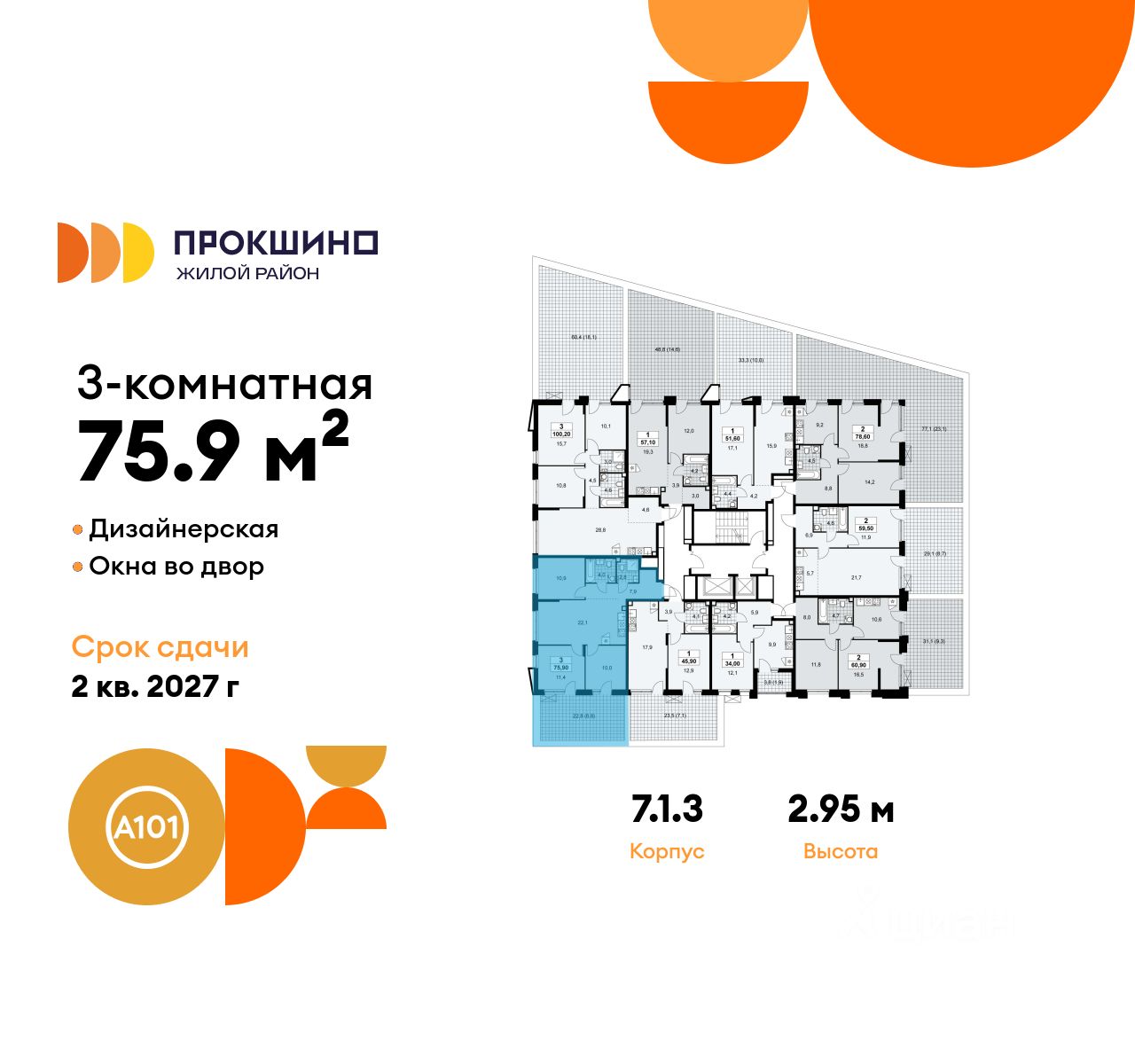 Продается трехкомнатная квартира 409 в новостройке Жилой квартал "Прокшино" по адресу Москва, ТиНАО, Новомосковский АО, Сосенское С/П, пос. Коммунарка. Общая площадь квартиры - 75.90 кв. м., этаж 2 из 17, секция 7. Тип проекта, по которому построен дом - монолит, компания-застройщик - ООО "А101". Стоимость квартиры - 28829942 Р. Срок сдачи - 2 квартал 2027.