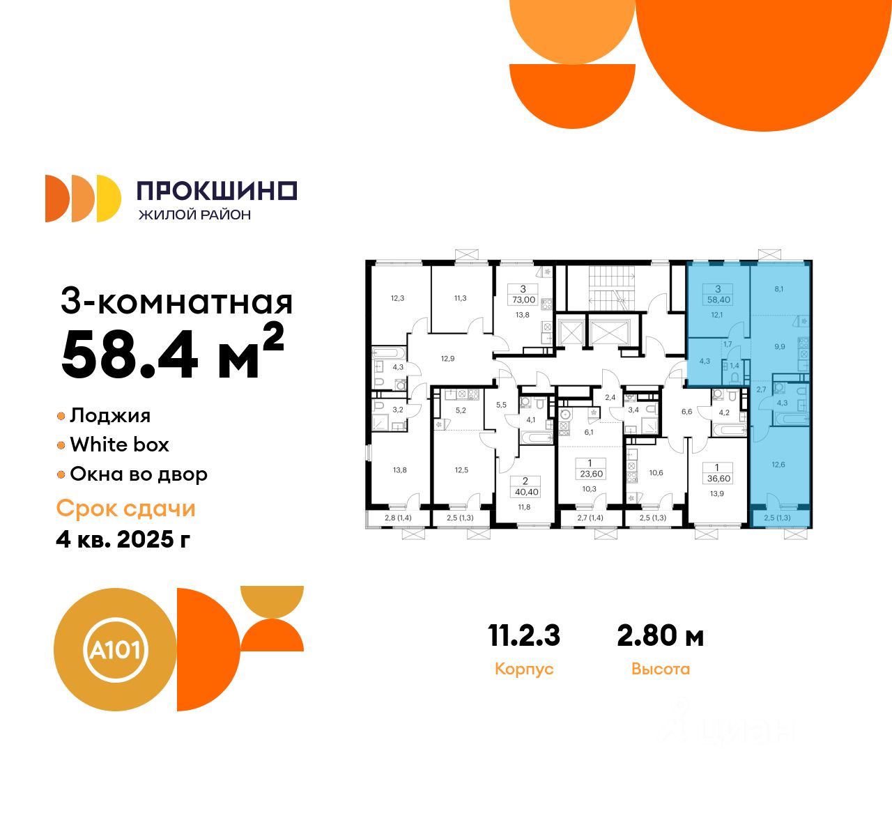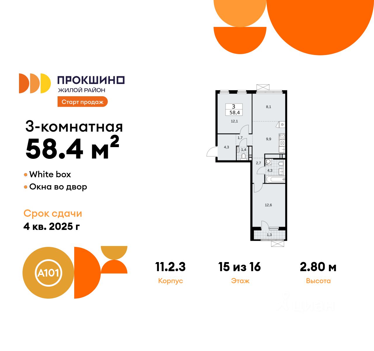 Продается трехкомнатная квартира 486 в новостройке Жилой квартал "Прокшино" по адресу Москва, ТиНАО, Новомосковский АО, Сосенское С/П, жилой комплекс Прокшино, к11.2.3, район Коммунарка, Новомосковский административный округ, Москва. Общая площадь квартиры - 58.40 кв. м., этаж 15 из 16, секция 6. Тип проекта, по которому построен дом - монолит, компания-застройщик - ООО "А101". Стоимость квартиры - 22077536 Р. Срок сдачи - 4 квартал 2025.