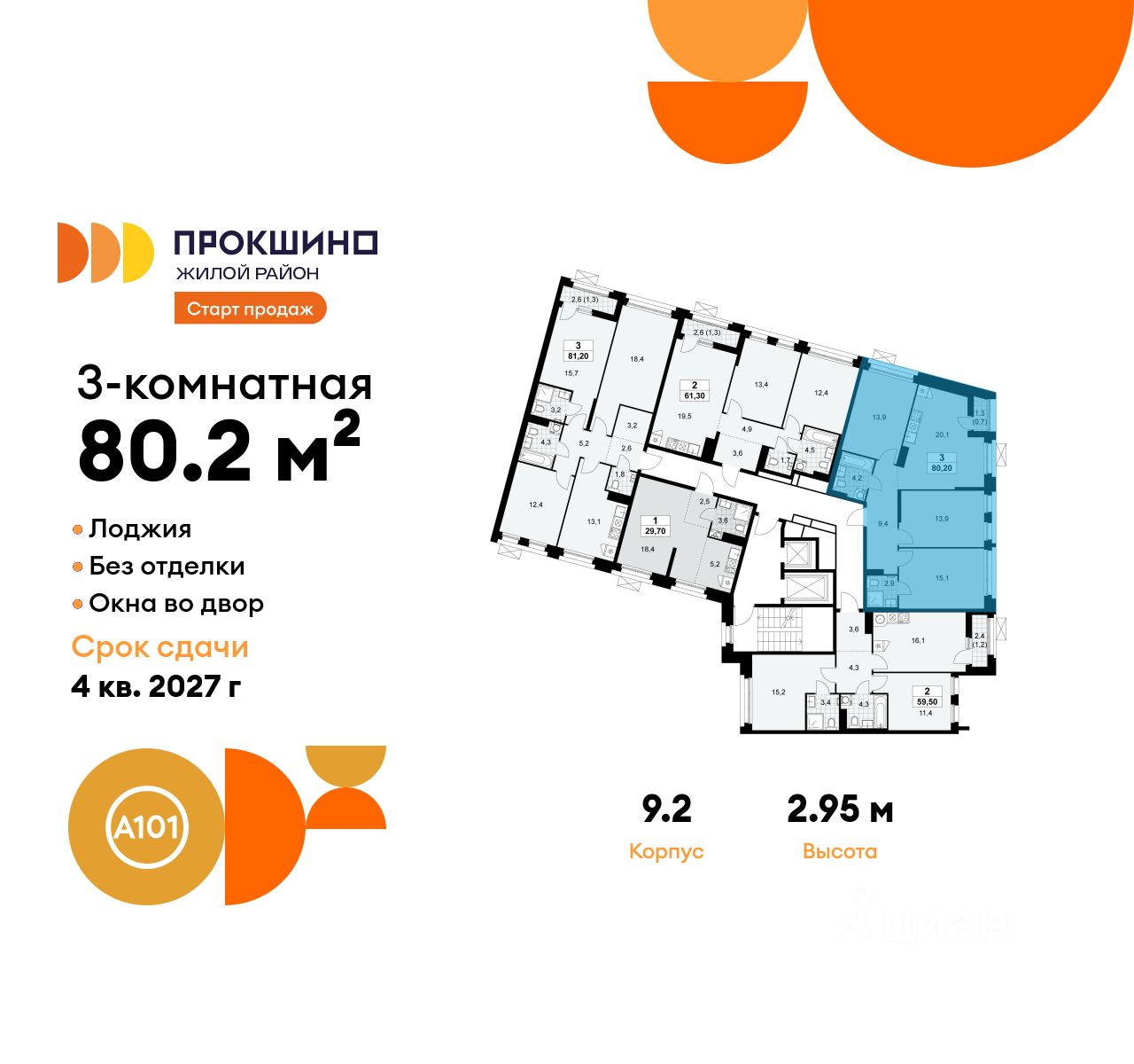 Продается трехкомнатная квартира 182 в новостройке Жилой квартал "Прокшино" по адресу Москва, ТиНАО, Новомосковский АО, Сосенское С/П, пос. Коммунарка. Общая площадь квартиры - 80.20 кв. м., этаж 11 из 14, секция 4. Тип проекта, по которому построен дом - монолит, компания-застройщик - ООО "А101". Стоимость квартиры - 27983384 Р. Срок сдачи - 4 квартал 2027.