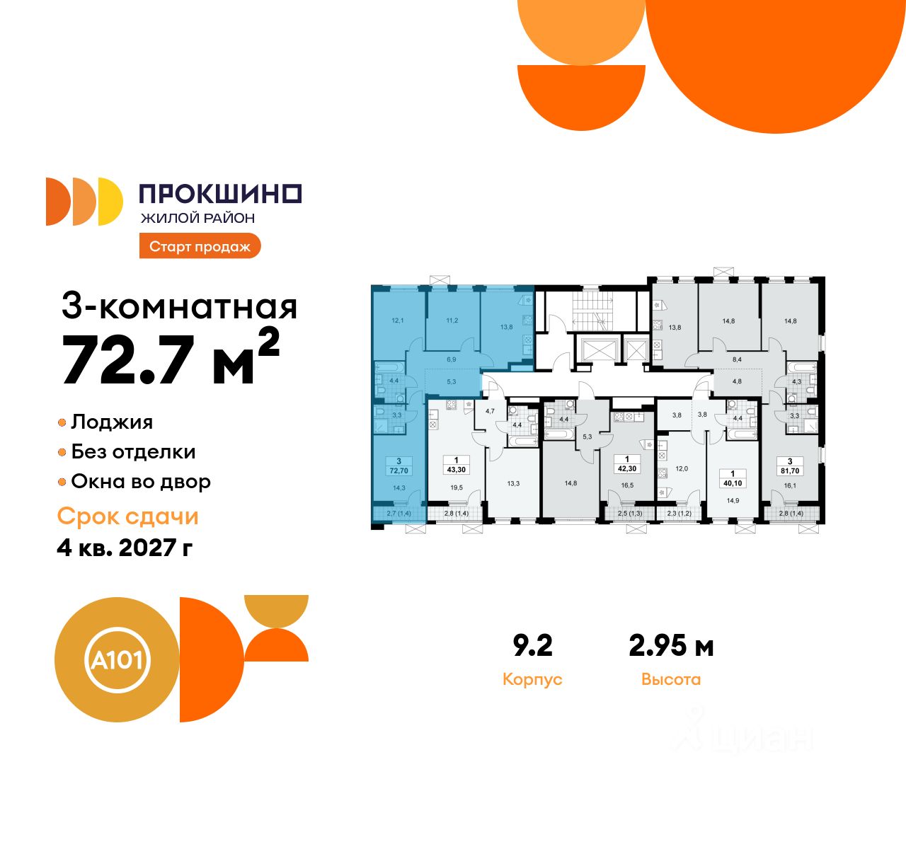 Продается трехкомнатная квартира 264 в новостройке Жилой квартал "Прокшино" по адресу Москва, ТиНАО, Новомосковский АО, Сосенское С/П, пос. Коммунарка. Общая площадь квартиры - 72.70 кв. м., этаж 5 из 10, секция 6. Тип проекта, по которому построен дом - монолит, компания-застройщик - ООО "А101". Стоимость квартиры - 27202159 Р. Срок сдачи - 4 квартал 2027.