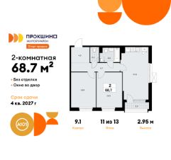 Продается двухкомнатная квартира 42 в новостройке Жилой квартал "Прокшино" по адресу Москва, ТиНАО, Новомосковский АО, Сосенское С/П, пос. Коммунарка. Общая площадь квартиры - 68.70 кв. м., этаж 11 из 13, секция 1. Тип проекта, по которому построен дом - монолит, компания-застройщик - ООО "А101". Стоимость квартиры - 22871604 Р. Срок сдачи - 4 квартал 2027.
