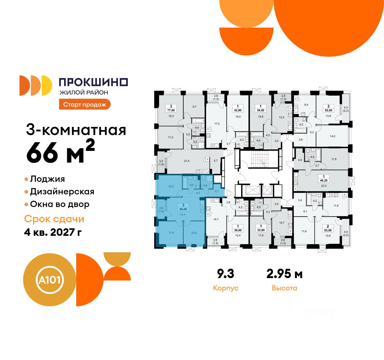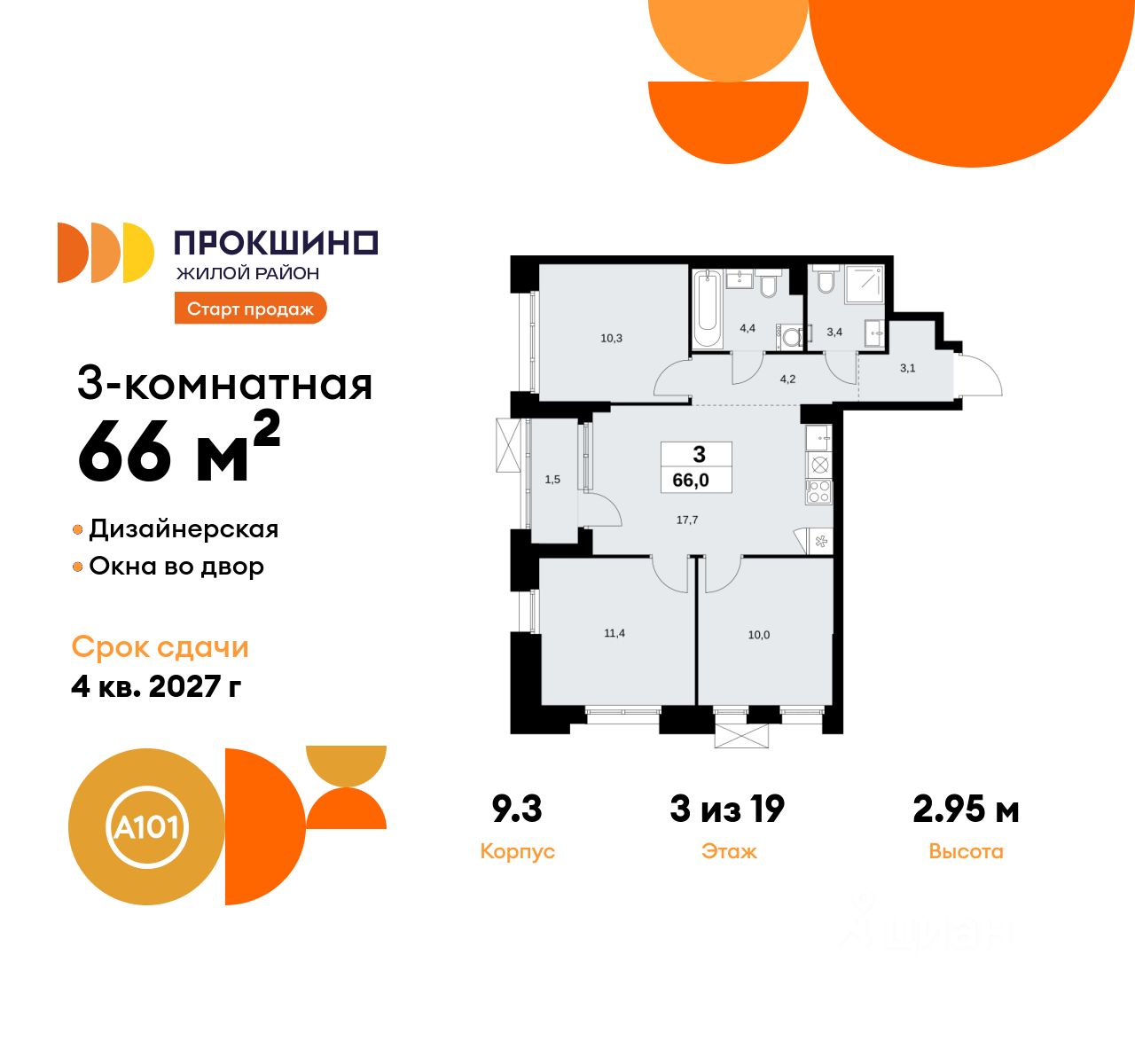 Продается трехкомнатная квартира 296 в новостройке Жилой квартал "Прокшино" по адресу Москва, ТиНАО, Новомосковский АО, Сосенское С/П, Москва, Новомосковский административный округ, район Коммунарка, жилой комплекс Прокшино. Общая площадь квартиры - 66.00 кв. м., этаж 3 из 19, секция 7. Тип проекта, по которому построен дом - монолит, компания-застройщик - ООО "А101". Стоимость квартиры - 23331660 Р. Срок сдачи - 4 квартал 2027.