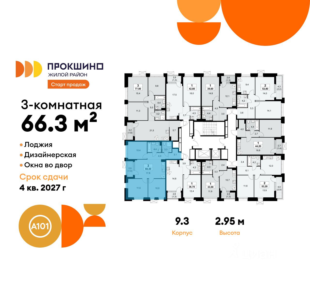 Продается трехкомнатная квартира 305 в новостройке Жилой квартал "Прокшино" по адресу Москва, ТиНАО, Новомосковский АО, Сосенское С/П, Москва, Новомосковский административный округ, район Коммунарка, жилой комплекс Прокшино. Общая площадь квартиры - 66.30 кв. м., этаж 4 из 19, секция 7. Тип проекта, по которому построен дом - монолит, компания-застройщик - ООО "А101". Стоимость квартиры - 26549172 Р. Срок сдачи - 4 квартал 2027.