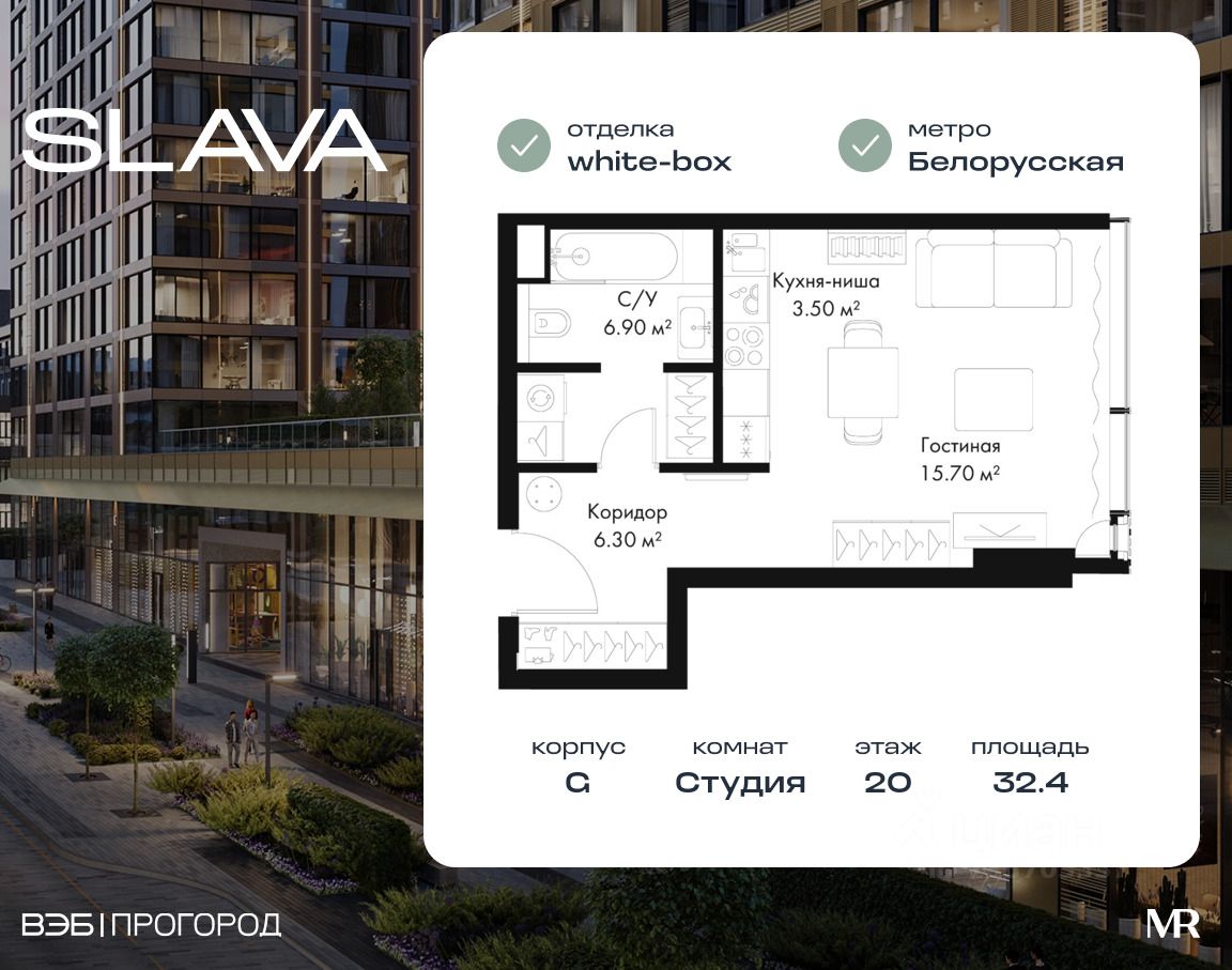 Квартиры премиум-класса в жилом комплексе SLAVA у м. "Белорусская" от застройщика. В продаже студия площадью 32.40 м² на 20-м этаже корпуса G. Новый современный жилой комплекс премиум-класса SLAVA расположен в той части центра, где традиция соединяется с прогрессивными городскими тенденциями. Здесь историческая Москва встречается с передовым миром. Популярные театры и старинные церкви соседствуют с современным деловым кварталом и гастрономическим кластером Депо. SLAVA находится всего в 5 мин. пешком от м. "Белорусская", по-новому открывая Ленинградский проспект. Проект был разработан легендарным архитектором Хельмутом Яном, основателем чикагского архитектурного бюро Jahn. Его работы отмечены множеством наград и реализованы в мегаполисах по всему миру. По замыслу архитекторов, жилой комплекс образуют четыре высотные башни, соединенные одноэтажным стилобатом "Хронограф". Здесь, на первом уровне, открытые и закрытые общественные пространства: небольшие сады, места для встреч и отдыха, кафе, рестораны, магазины, спортивный центр и даже выставочное пространство. Важнейшей особенностью пространства является его всесезонность: благодаря правильной организации, ландшафтному дизайну, инженерной инфраструктуре здесь будет уютно и в жару, и в xолод, и в ненастье. На втором уровне стилобата расположится приватный парк для жильцов. Особенности комплекса: - Идеальное расположение в престижной части Москвы (10 мин. от Кремля) - Панорамное остекление - Подземный паркинг с дизайнерской отделкой - Современные инженерные системы - Продуманная внутренняя инфраструктура - Приватный сад 7700 кв.м. Расположение комплекса: - 5 минут до станции метро "Белорусская" - 3 минуты до ТТК - 8 минут до "Садового кольца" Компания MR предлагает своим клиентам специальные условия приобретения квартир в рамках программ ипотечного кредитования от банков-партнеров.