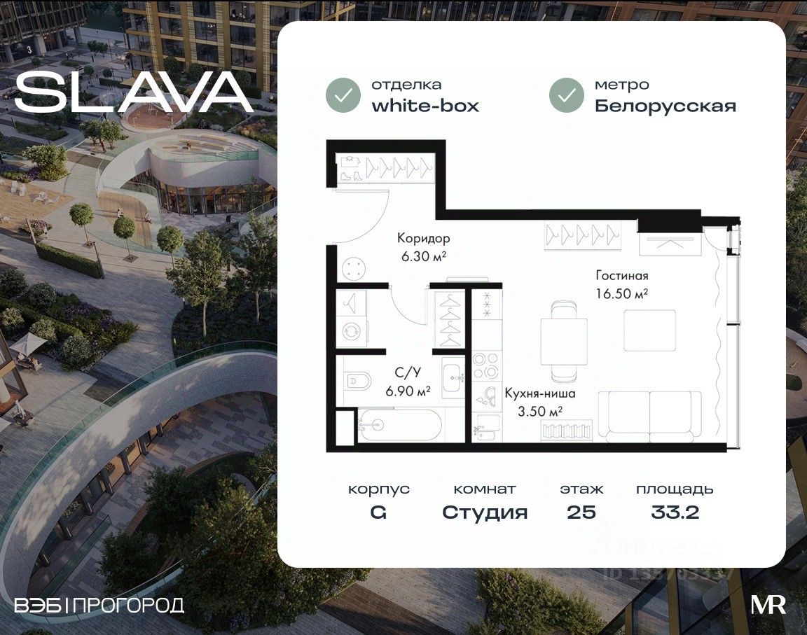 В продаже студия площадью 33.20 м² на 25-м этаже корпуса G.
