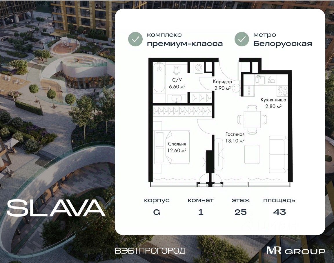 Квартиры премиум-класса в жилом комплексе SLAVA у м. "Белорусская" от застройщика.
