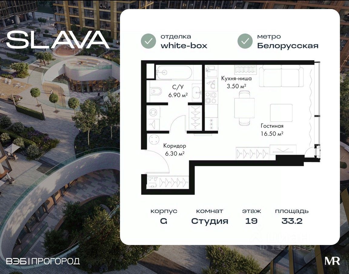 В продаже студия площадью 33.20 м² на 19-м этаже корпуса G.