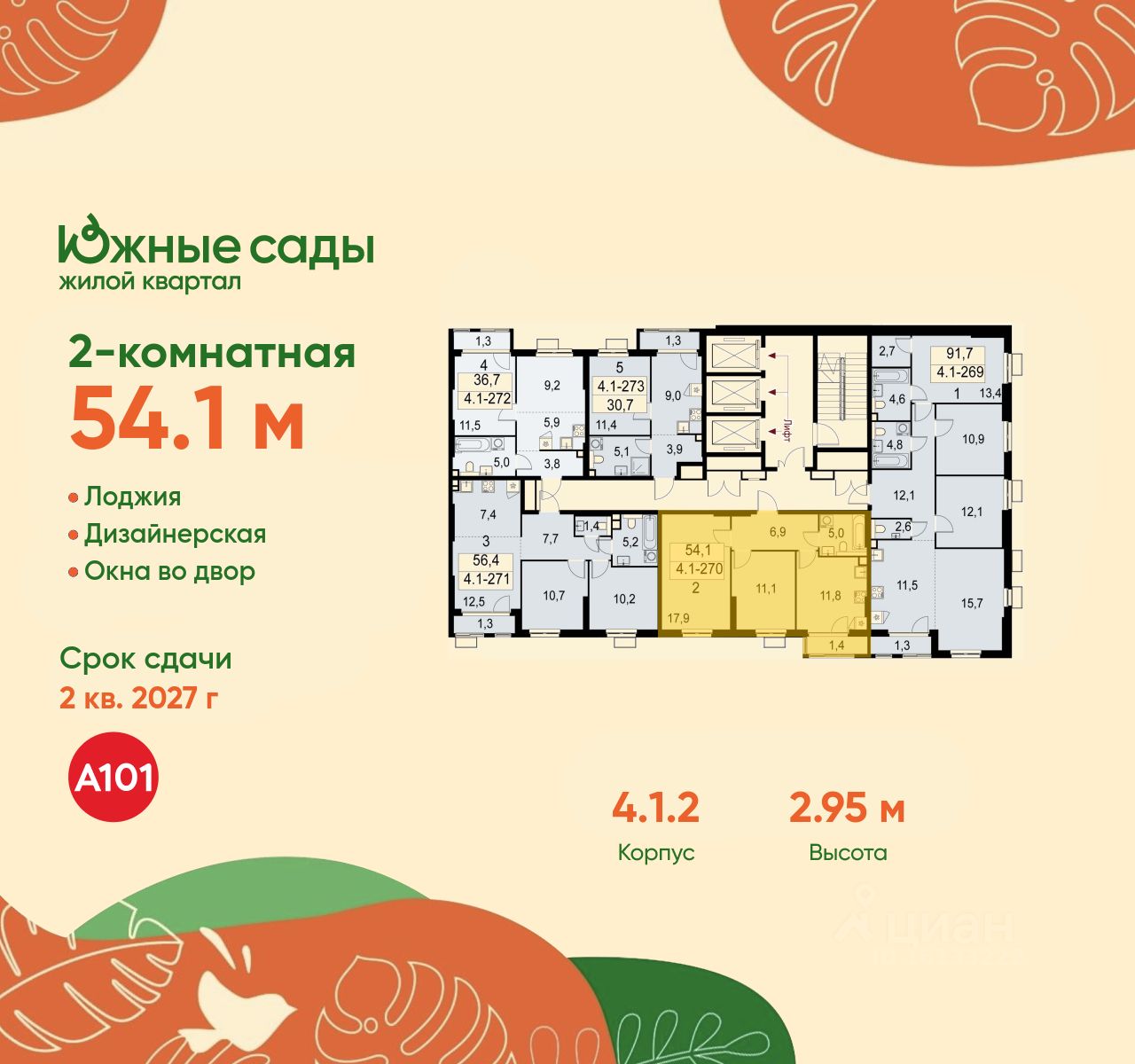 Продается двухкомнатная квартира 365 в новостройке ЖК "Южные Сады" по адресу Москва, ЮЗАО, Южное Бутово, ул. Бартеневская, д. 16. Общая площадь квартиры - 54.10 кв. м., этаж 21 из 30, секция 4. Тип проекта, по которому построен дом - монолит, компания-застройщик - ООО "А101". Стоимость квартиры - 20044050 Р. Срок сдачи - 2 квартал 2027.