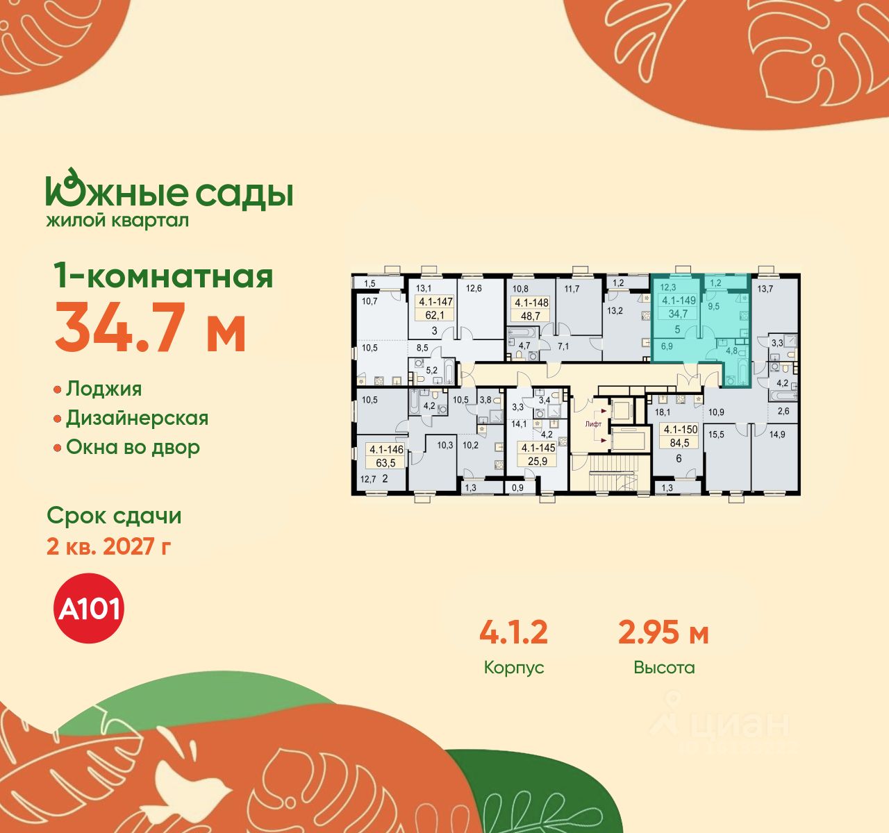 Продается однокомнатная квартира 191 в новостройке ЖК "Южные Сады" по адресу Москва, ЮЗАО, Южное Бутово, ул. Бартеневская, д. 16. Общая площадь квартиры - 34.70 кв. м., этаж 10 из 11, секция 2. Тип проекта, по которому построен дом - монолит, компания-застройщик - ООО "А101". Стоимость квартиры - 16324268 Р. Срок сдачи - 2 квартал 2027.