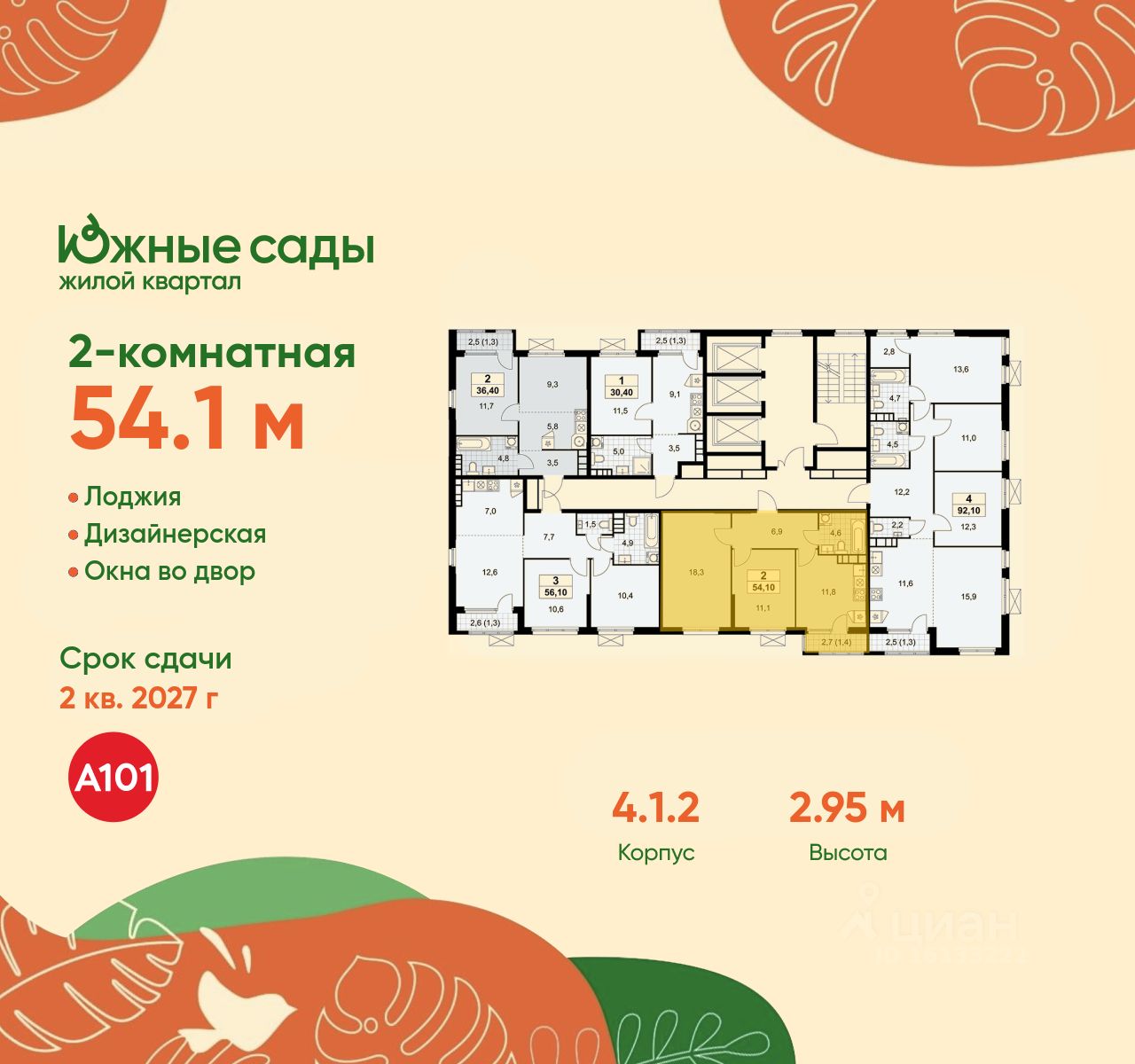 Продается двухкомнатная квартира 380 в новостройке ЖК "Южные Сады" по адресу Москва, ЮЗАО, Южное Бутово, ул. Бартеневская, д. 16. Общая площадь квартиры - 54.10 кв. м., этаж 24 из 30, секция 4. Тип проекта, по которому построен дом - монолит, компания-застройщик - ООО "А101". Стоимость квартиры - 21202872 Р. Срок сдачи - 2 квартал 2027.