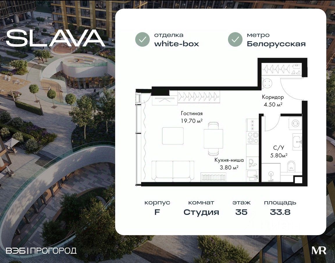 В продаже студия площадью 33.80 м² на 35-м этаже корпуса F.