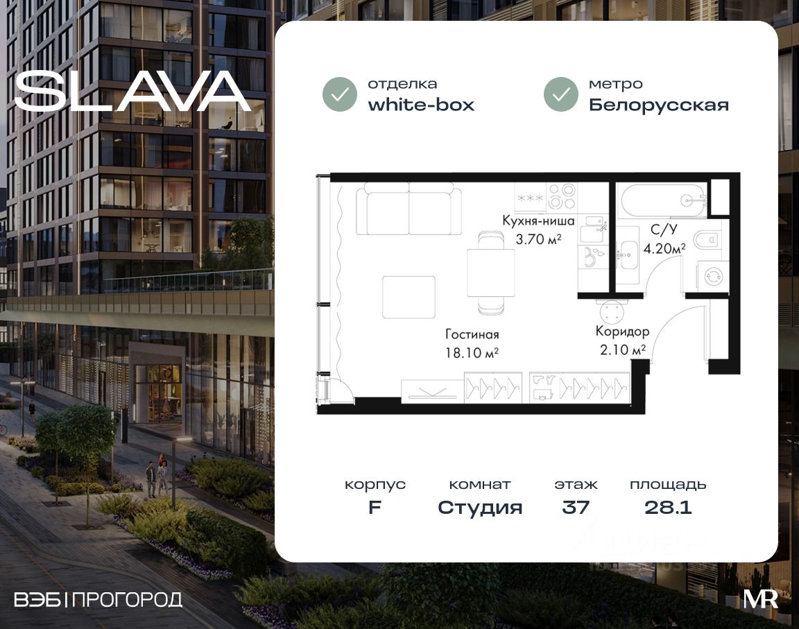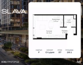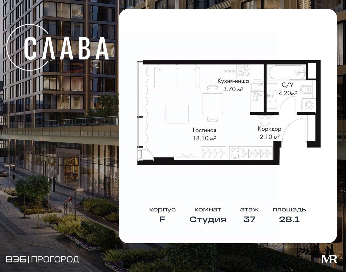 В продаже студия площадью 28.10 м² на 37-м этаже корпуса F.