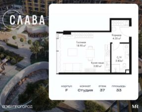В продаже студия площадью 33 м² на 37-м этаже корпуса F.