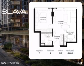 В продаже 1-комнатная квартира площадью 40.80 м² на 35-м этаже корпуса F.