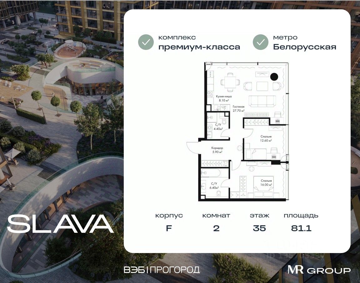 Квартиры премиум-класса в жилом комплексе SLAVA у м. "Белорусская" от застройщика.