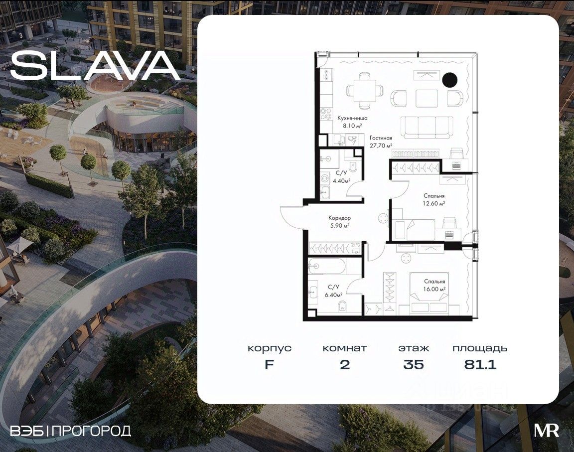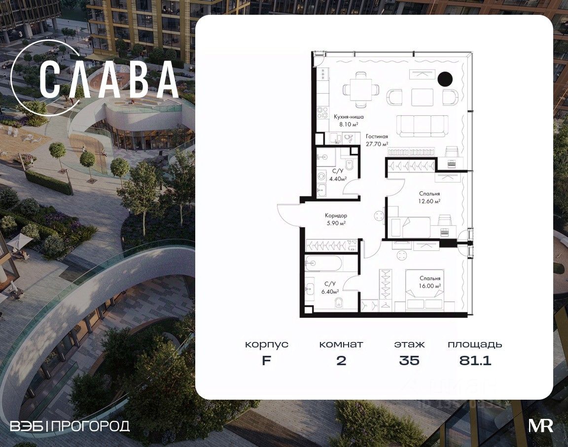 В продаже 2-комнатная квартира площадью 81.10 м² на 35-м этаже корпуса F.