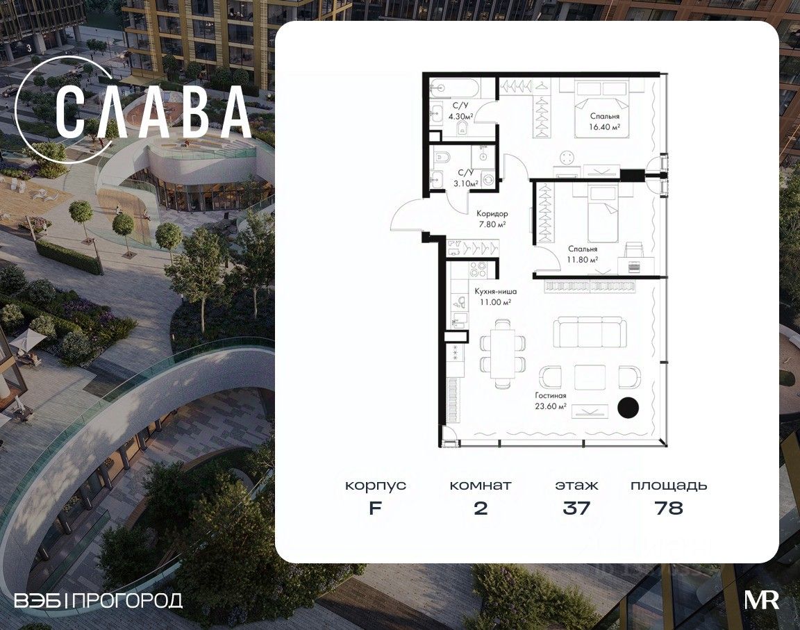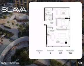В продаже 2-комнатная квартира площадью 78 м² на 37-м этаже корпуса F.