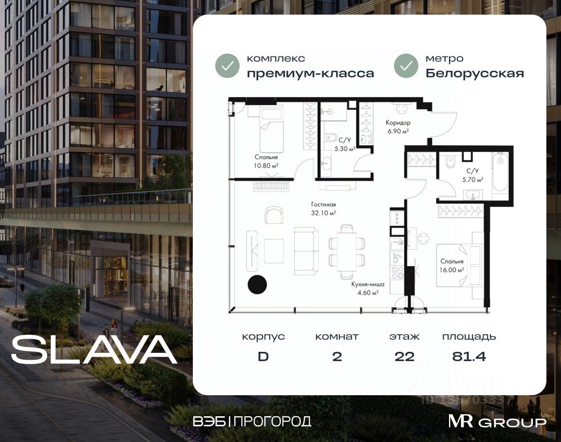 Квартиры премиум-класса в жилом комплексе SLAVA у м. "Белорусская" от застройщика.