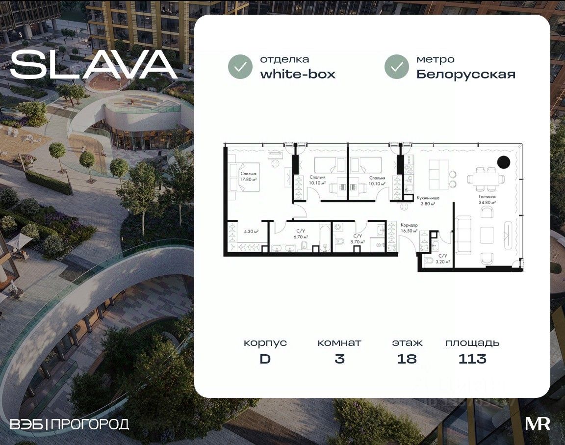 Квартиры премиум-класса в жилом комплексе SLAVA у м. "Белорусская" от застройщика.