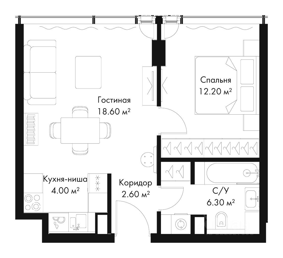 Общая площадь43,7 м²