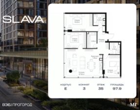 В продаже 3-комнатная квартира площадью 97.90 м² на 35-м этаже корпуса E.