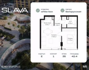 В продаже 1-комнатная квартира площадью 42.40 м² на 35-м этаже корпуса E.