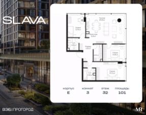 В продаже 3-комнатная квартира площадью 101 м² на 32-м этаже корпуса E.