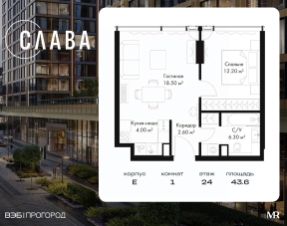 Квартиры премиум-класса в жилом комплексе Слава у м. "Белорусская" от застройщика. В продаже 1-комнатная квартира площадью 43.60 м² на 24-м этаже корпуса E. Новый современный жилой комплекс премиум-класса Слава расположен в той части центра, где традиция соединяется с прогрессивными городскими тенденциями. Здесь историческая Москва встречается с передовым миром. Популярные театры и старинные церкви соседствуют с современным деловым кварталом и гастрономическим кластером Депо. Слава находится всего в 5 мин. пешком от м. "Белорусская", по-новому открывая Ленинградский проспект. Проект был разработан легендарным архитектором Хельмутом Яном, основателем чикагского архитектурного бюро Jahn. Его работы отмечены множеством наград и реализованы в мегаполисах по всему миру. По замыслу архитекторов, жилой комплекс образуют четыре высотные башни, соединенные одноэтажным стилобатом "Хронограф". Здесь, на первом уровне, открытые и закрытые общественные пространства: небольшие сады, места для встреч и отдыха, кафе, рестораны, магазины, спортивный центр и даже выставочное пространство. Важнейшей особенностью пространства является его всесезонность: благодаря правильной организации, ландшафтному дизайну, инженерной инфраструктуре здесь будет уютно и в жару, и в xолод, и в ненастье. На втором уровне стилобата расположится приватный парк для жильцов. Особенности комплекса: - Идеальное расположение в престижной части Москвы (10 мин. от Кремля) - Панорамное остекление - Подземный паркинг с дизайнерской отделкой - Современные инженерные системы - Продуманная внутренняя инфраструктура - Приватный сад 7700 кв.м. Расположение комплекса: - 5 минут до станции метро "Белорусская" - 3 минуты до ТТК - 8 минут до "Садового кольца" Компания MR предлагает своим клиентам специальные условия приобретения квартир в рамках программ ипотечного кредитования от банков-партнеров.
