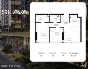 В продаже 2-комнатная квартира площадью 62.40 м² на 4-м этаже корпуса E.