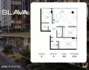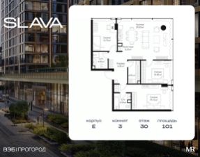 В продаже 3-комнатная квартира площадью 101 м² на 30-м этаже корпуса E.