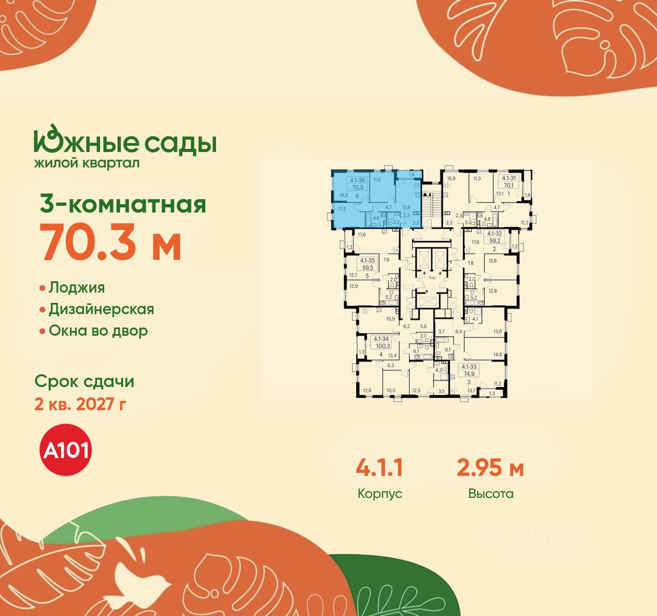 Продается трехкомнатная квартира 120 в новостройке ЖК "Южные Сады" по адресу Москва, ЮЗАО, Южное Бутово, ул. Бартеневская, д. 16. Общая площадь квартиры - 70.30 кв. м., этаж 21 из 24, секция 1. Тип проекта, по которому построен дом - монолит, компания-застройщик - ООО "А101". Стоимость квартиры - 25977256 Р. Срок сдачи - 2 квартал 2027.