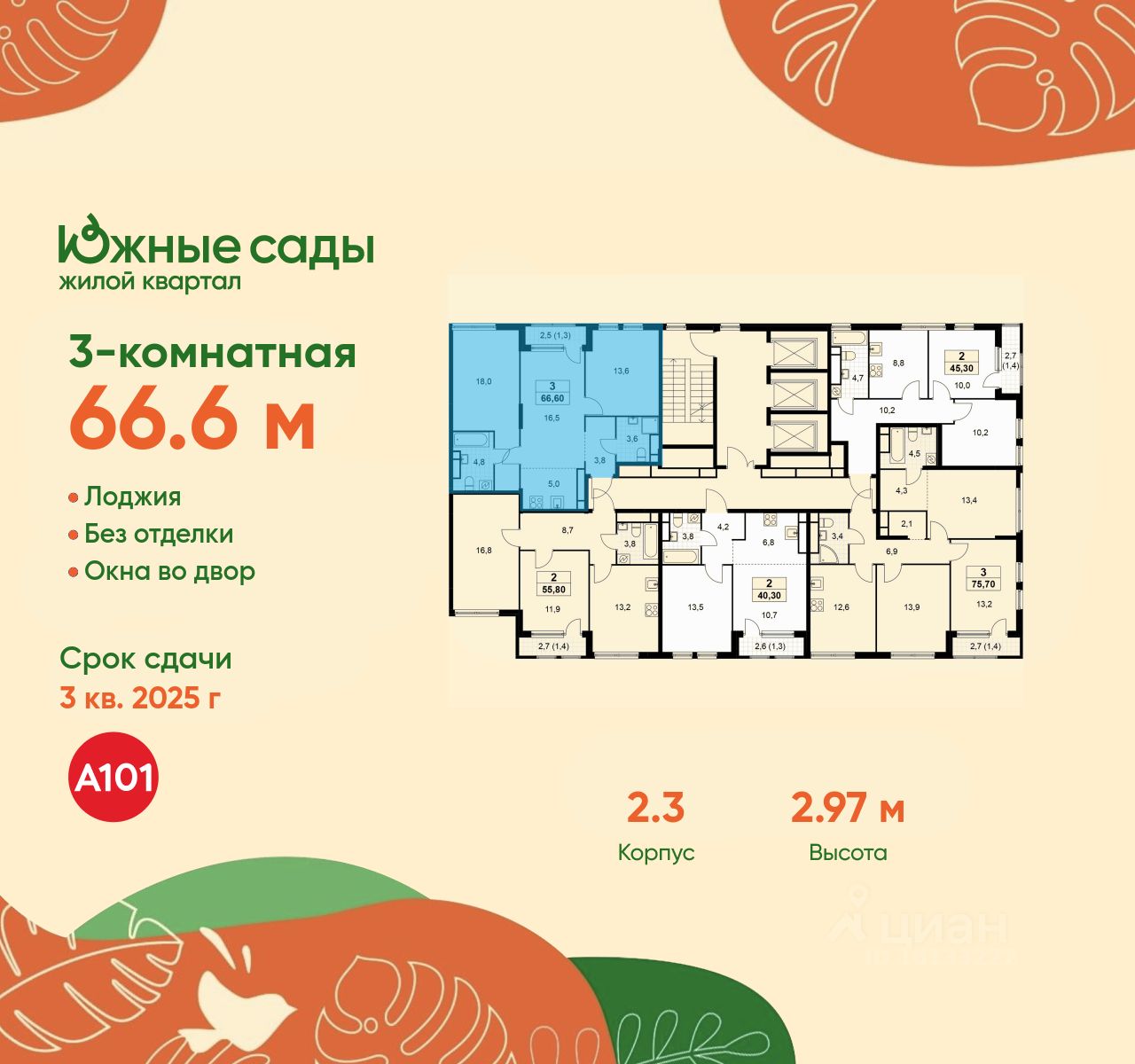 Продается трехкомнатная квартира 783 в новостройке ЖК "Южные Сады" по адресу Москва, ЮЗАО, Южное Бутово, Жилой комплекс "Южные Сады", корп. 2.3. Общая площадь квартиры - 66.60 кв. м., этаж 28 из 30, секция 6. Тип проекта, по которому построен дом - монолит, компания-застройщик - ООО "А101". Стоимость квартиры - 23144832 Р. Срок сдачи - 4 квартал 2025.