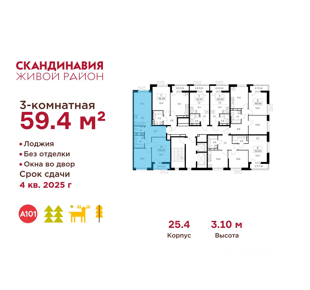 Продается трехкомнатная квартира 660 в новостройке Жилой район "Скандинавия" по адресу Москва, ТиНАО, Новомосковский АО, Сосенское С/П, Коммунарка пос., жилой комплекс Скандинавия, 25.4, район Коммунарка, Новомосковский административный округ, Москва. Общая площадь квартиры - 59.40 кв. м., этаж 8 из 13, секция 7. Тип проекта, по которому построен дом - монолит, компания-застройщик - ООО "А101". Стоимость квартиры - 23717826 Р. Срок сдачи - 1 квартал 2026.