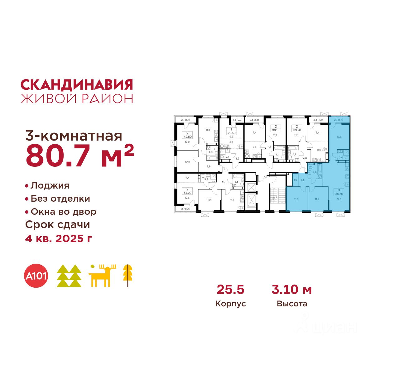 Продается трехкомнатная квартира 755 в новостройке Жилой район "Скандинавия" по адресу Москва, ТиНАО, Новомосковский АО, Сосенское С/П, Коммунарка пос., жилой комплекс Скандинавия, 25.5. Общая площадь квартиры - 80.70 кв. м., этаж 12 из 12, секция 8. Тип проекта, по которому построен дом - монолит, компания-застройщик - ООО "А101". Стоимость квартиры - 28672710 Р. Срок сдачи - 1 квартал 2026.
