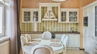Двухуровневая квартира с тремя спальнями в доме "Маршала Новикова, 12". Квартира площадью 209 м² расположена на 7-м и 8-м этажах. Выполнена дизайнерская отделка с использованием премиальных материалов, интерьеры украшают декоративные молдинги, карнизы, многоуровневые потолки и графика на стенах. Установлена система индивидуального кондиционирования, в ванной комнате — влагостойкий телевизор. В потолки кухни-гостиной, спален на втором этаже и ванной комнаты с хамамом встроена аудиосистема.